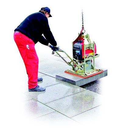 Das Hebegerät verfügt über eine fest angebaute Saugplatte 120-38/38 für eine max. Tragfähigkeit von 120 kg. Durch einen Schnellwechselverschluss kann durch Anbau einer Saugplatte die Tragkraft auf 320 kg erhöht werden.