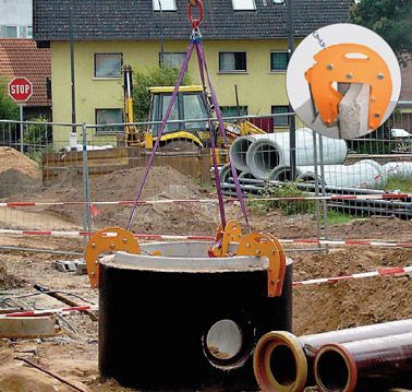 Die Schachtzange wird zum Transport und Versetzen von Schachtringen eingesetzt. Die Einstellung des Spannbereiches ist nicht mehr notwendig. Unfälle durch falsch eingestellte Klemmen sind ausgeschlossen. Durch einen Offenhalter muß die Klemme beim Anschlagen und Lösen nicht mehr gehoben werden. Die Schachtzange kann für alle gängigen Schachtringe verwendet werden.